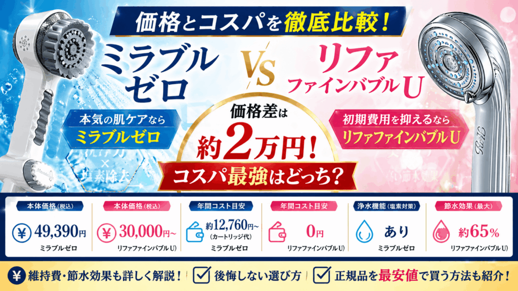 ミラブルプラスとミラブルゼロの違いを7項目で比較!水流・価格・洗浄力・使いやすさの差とは?